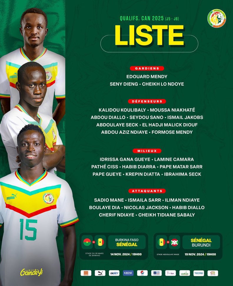 Après une suspension imposée par la CAF suite à des commentaires controversés, Krépin Diatta est de retour dans l’équipe. Sa présence offre un regain de confiance au Sénégal, en quête de rédemption après l’élimination en huitième de finale de la CAN 2023.